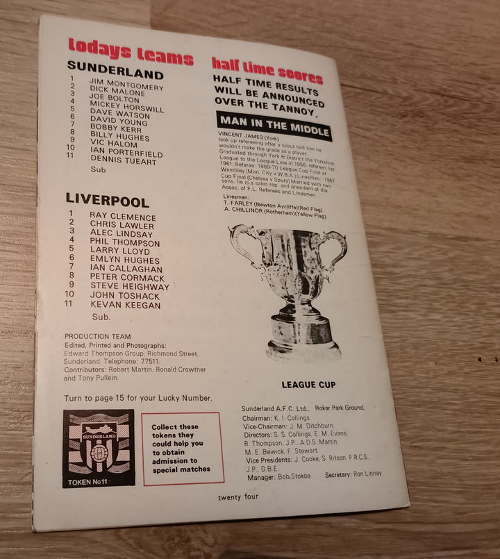 Sunderland v Liverpool 1973.4 FLC 3rd Round SIGNED Ron Guthrie