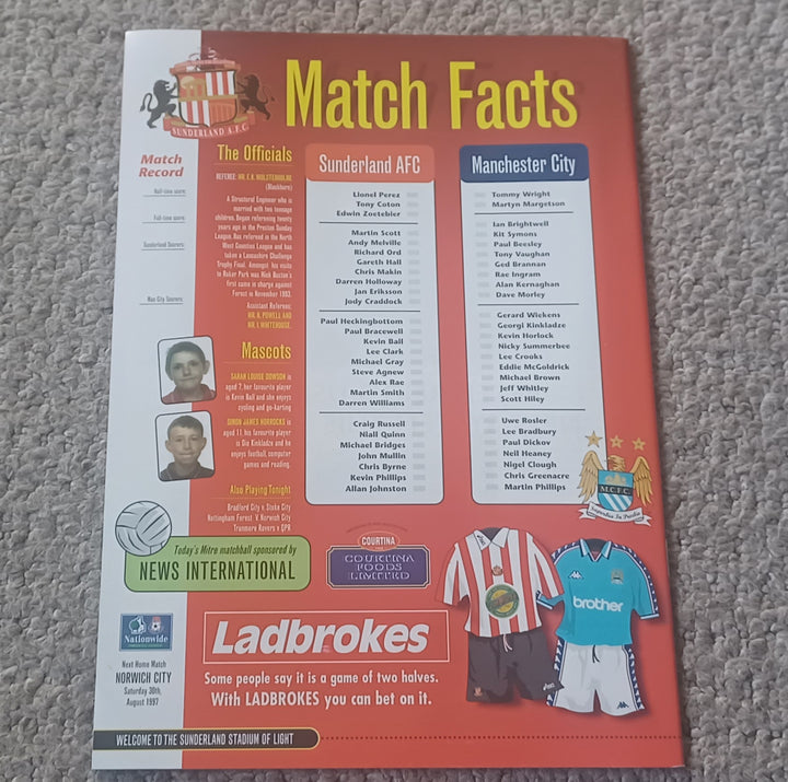 Sunderland v Manchester City 1997/8 1st Issue at S.O.L