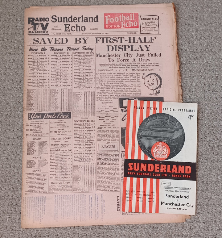 Sunderland v Manchester City Football Echo & Match Programme 1957/8
