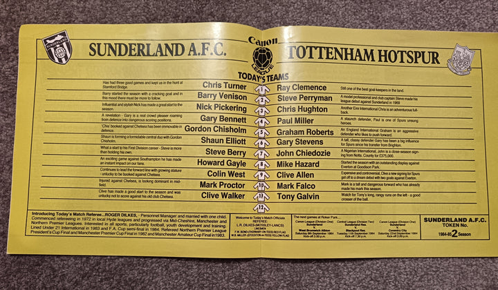 Sunderland v Tottenham 1984/5 Signed Gary Bennett