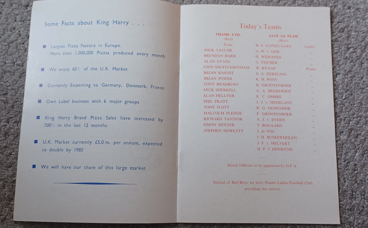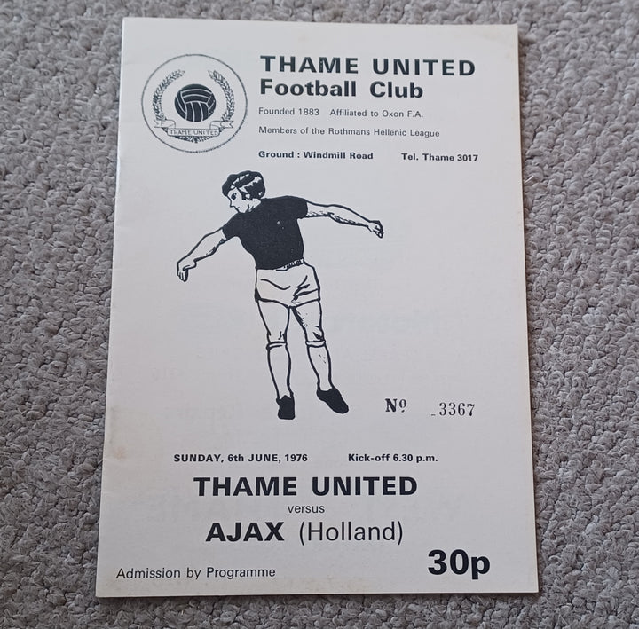 Dated 6th June 1976. Game was against Ajax 3rd team. Excellent condition.