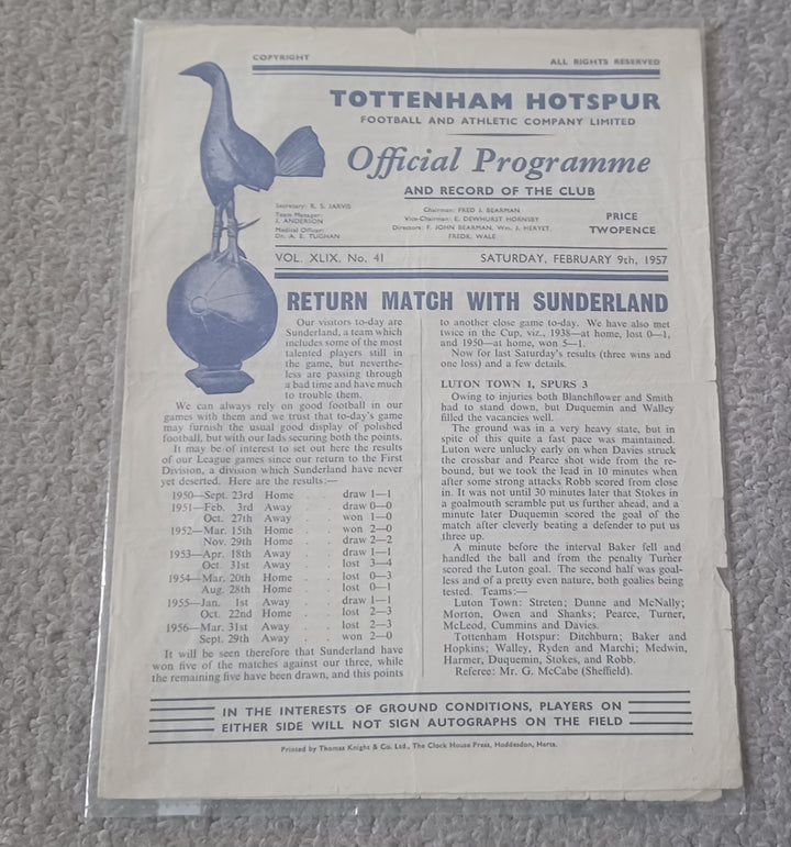 Tottenham v Sunderland 1956/7