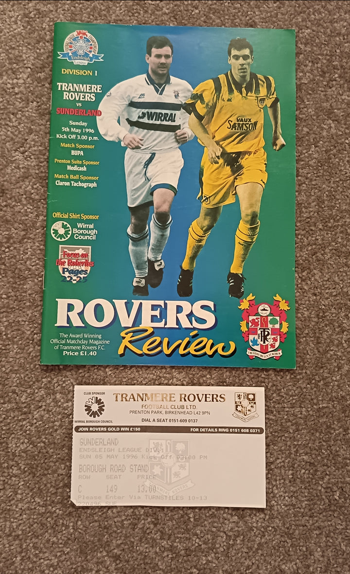 Tranmere Rovers v Sunderland 1995/6 inc Match Ticket