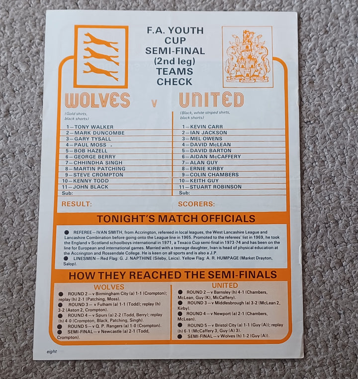 Wolves v Newcastle Utd 1976 FA Youth Cup Semi Final